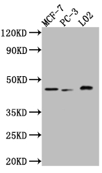Positive WB detected in: MCF-7 whole cell lysate, PC-3 whole cell lysate, L02 whole cell lysate