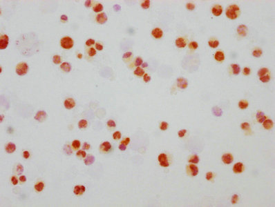 Immunocytochemistry analysis of CSB-RA013466A183phHU diluted at 1:165 and staining in Hela cells(treated with 100ng/ml EGF for 4h) performed on a Leica BondTM system. The cells were fixed in 4% formaldehyde, permeabilized using 0.2% Triton X-100 and blocked with 10% normal goat serum 30min at RT. Then primary antibody (1% BSA) was incubated at 4℃ overnight. The primary is detected by a biotinylated secondary antibody and visualized using an HRP conjugated SP system.