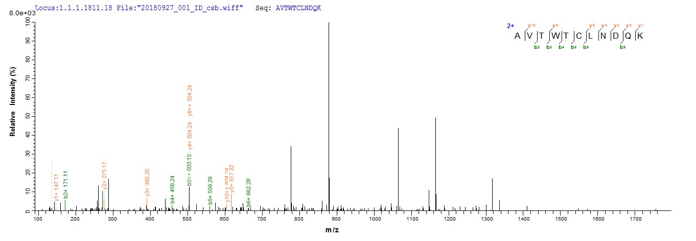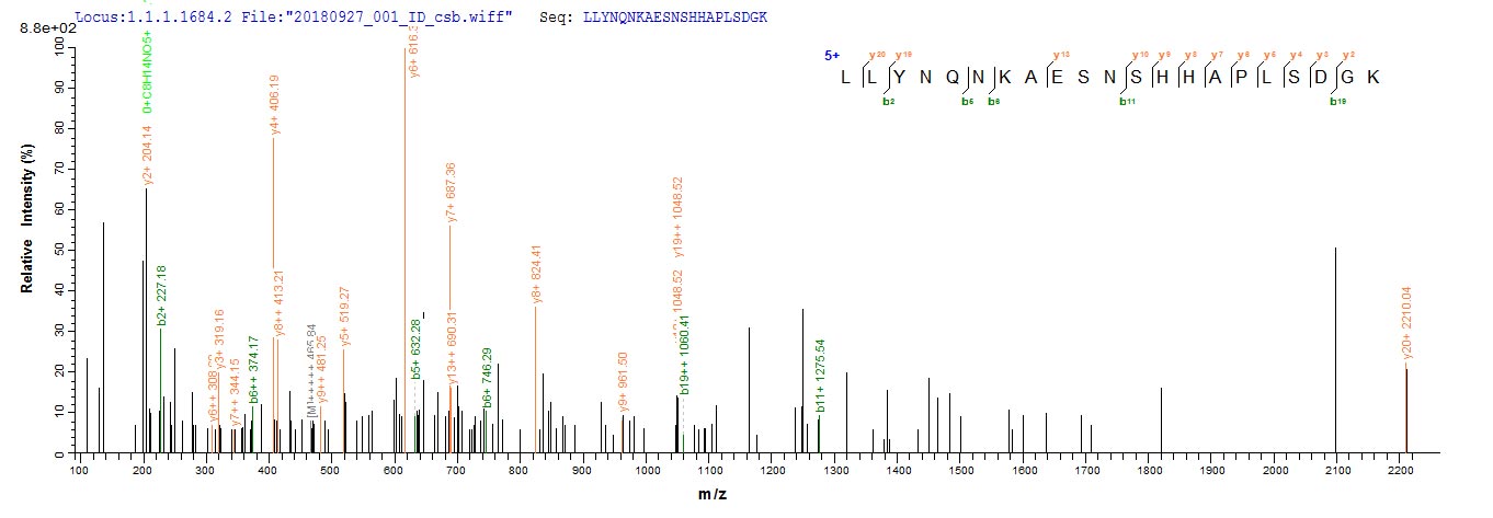 Based on the SEQUEST from database of E.coli host and target protein, the LC-MS/MS Analysis result of CSB-EP365461APN(A5) could indicate that this peptide derived from E.coli-expressed Aspergillus giganteus sar.