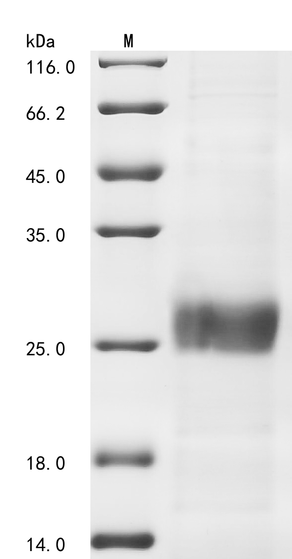 復(fù)溶:We recommend that this vial be briefly centrifuged prior to opening to bring the contents to the bottom. Please reconstitute protein in deionized sterile water to a concentration of 0.1-1.0 mg/mL.We recommend to add 5-50% of glycerol (final concentration) and aliquot for long-term storage at -20°C/-80°C. Our default final concentration of glycerol is 50%. Customers could use it as reference.