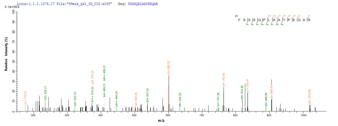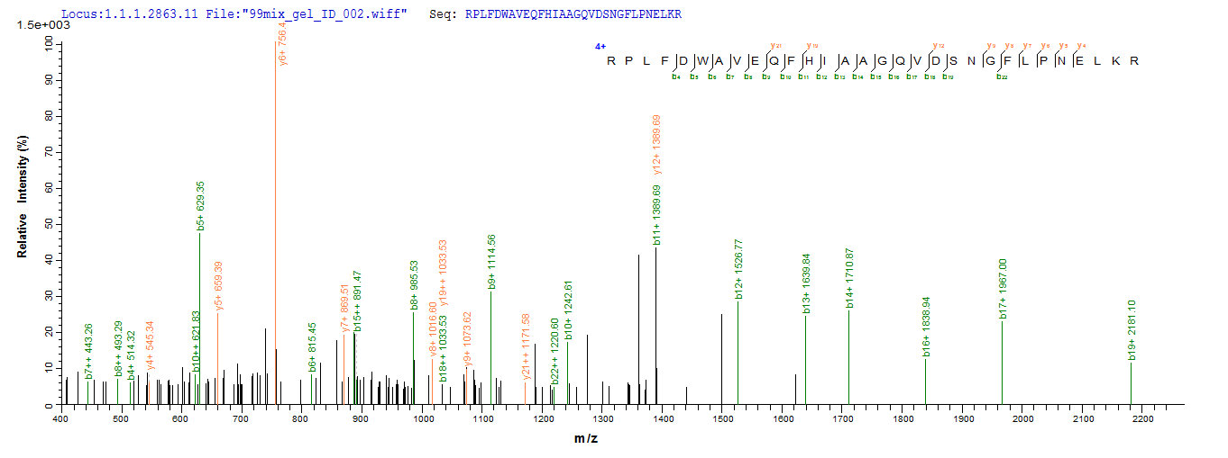 Based on the SEQUEST from database of E.coli host and target protein, the LC-MS/MS Analysis result of CSB-EP524422DPX could indicate that this peptide derived from E.coli-expressed Azotobacter vinelandii algL.