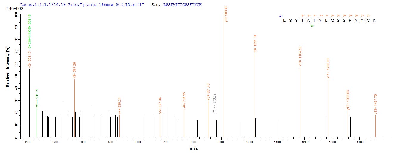 Based on the SEQUEST from database of E.coli host and target protein, the LC-MS/MS Analysis result of CSB-EP365470BQT could indicate that this peptide derived from E.coli-expressed Bacillus licheniformis apr.