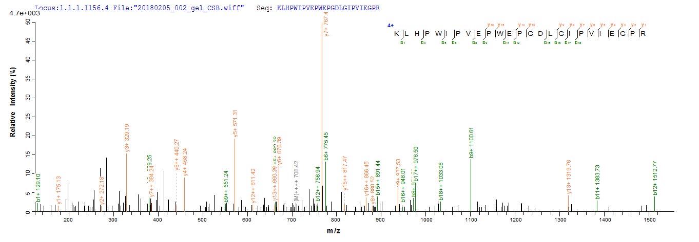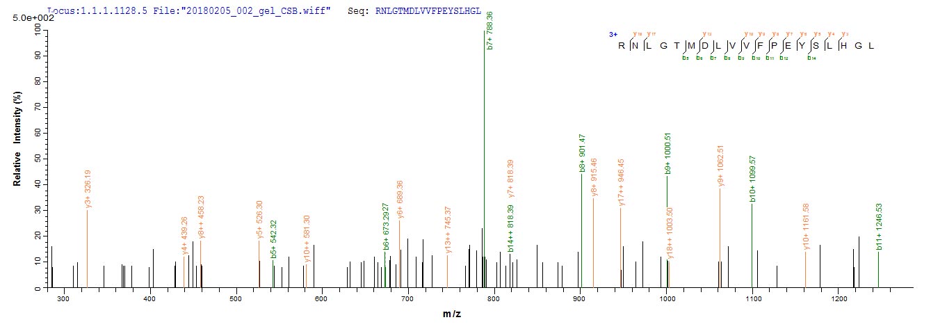 Based on the SEQUEST from database of E.coli host and target protein, the LC-MS/MS Analysis result of CSB-EP397462BPF could indicate that this peptide derived from E.coli-expressed Bradyrhizobium sp. (strain ORS278) amiF.