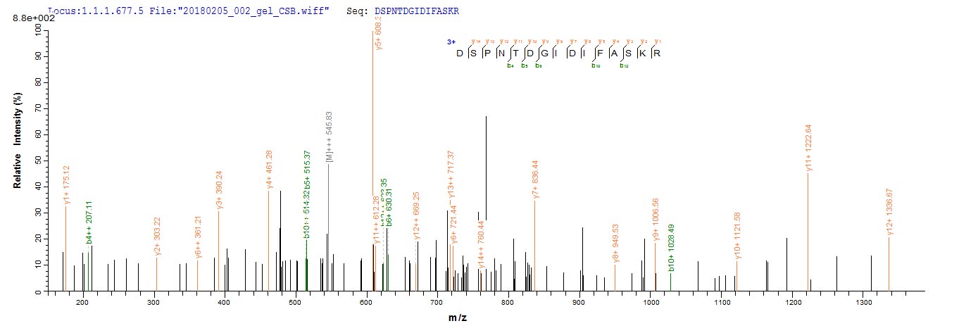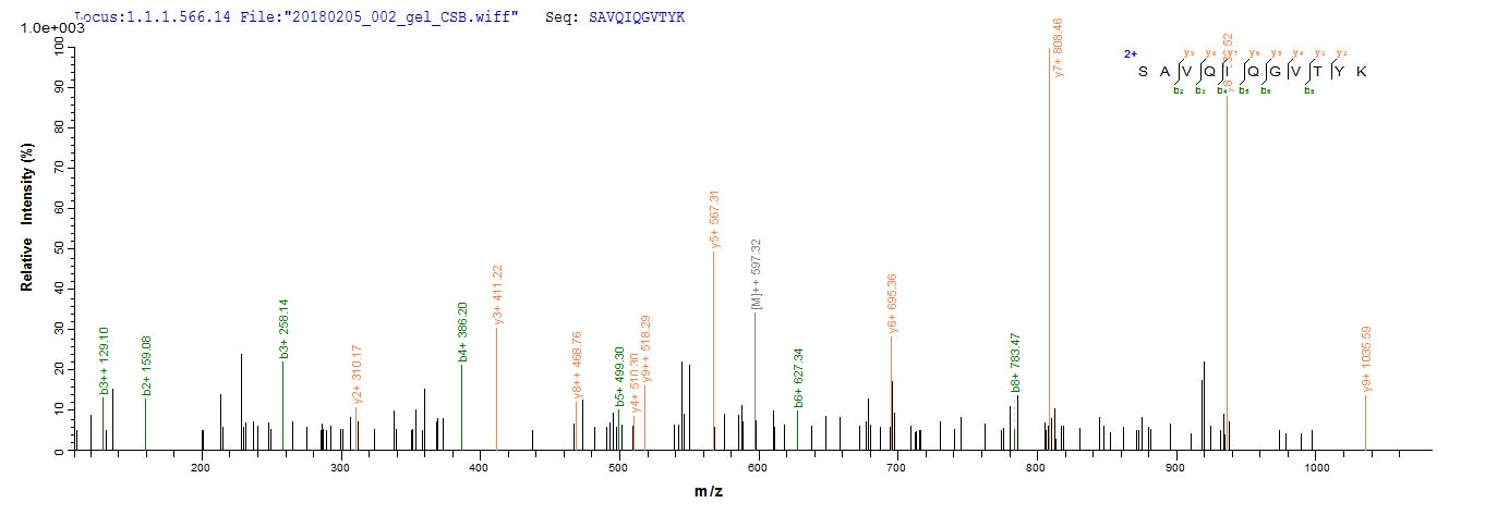 Based on the SEQUEST from database of E.coli host and target protein, the LC-MS/MS Analysis result of CSB-EP752116CHAX could indicate that this peptide derived from E.coli-expressed Chamaecyparis obtusa (Hinoki false-cypress) N/A.
