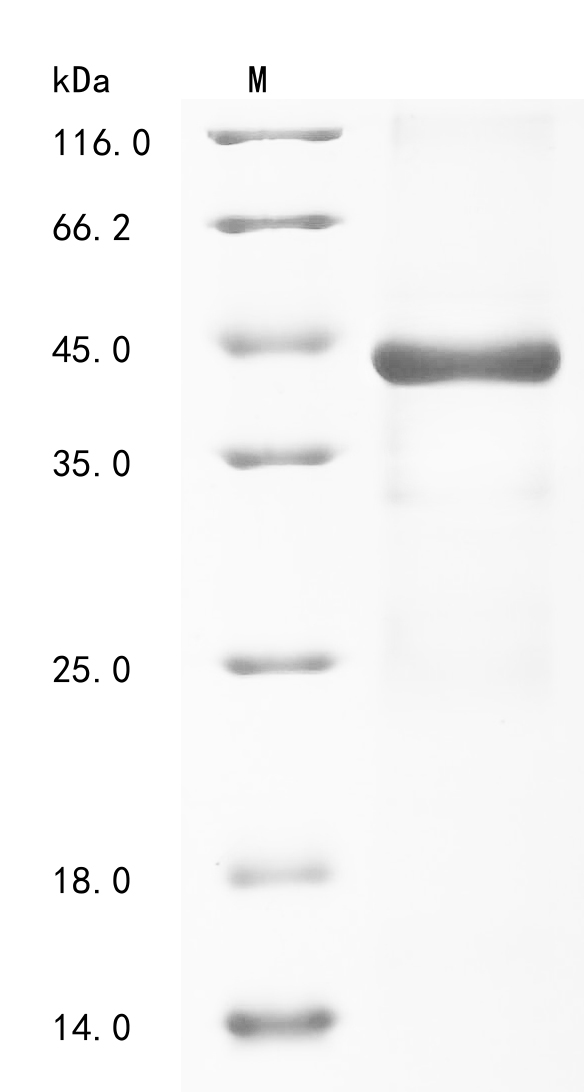 復(fù)溶:We recommend that this vial be briefly centrifuged prior to opening to bring the contents to the bottom. Please reconstitute protein in deionized sterile water to a concentration of 0.1-1.0 mg/mL.We recommend to add 5-50% of glycerol (final concentration) and aliquot for long-term storage at -20°C/-80°C. Our default final concentration of glycerol is 50%. Customers could use it as reference.