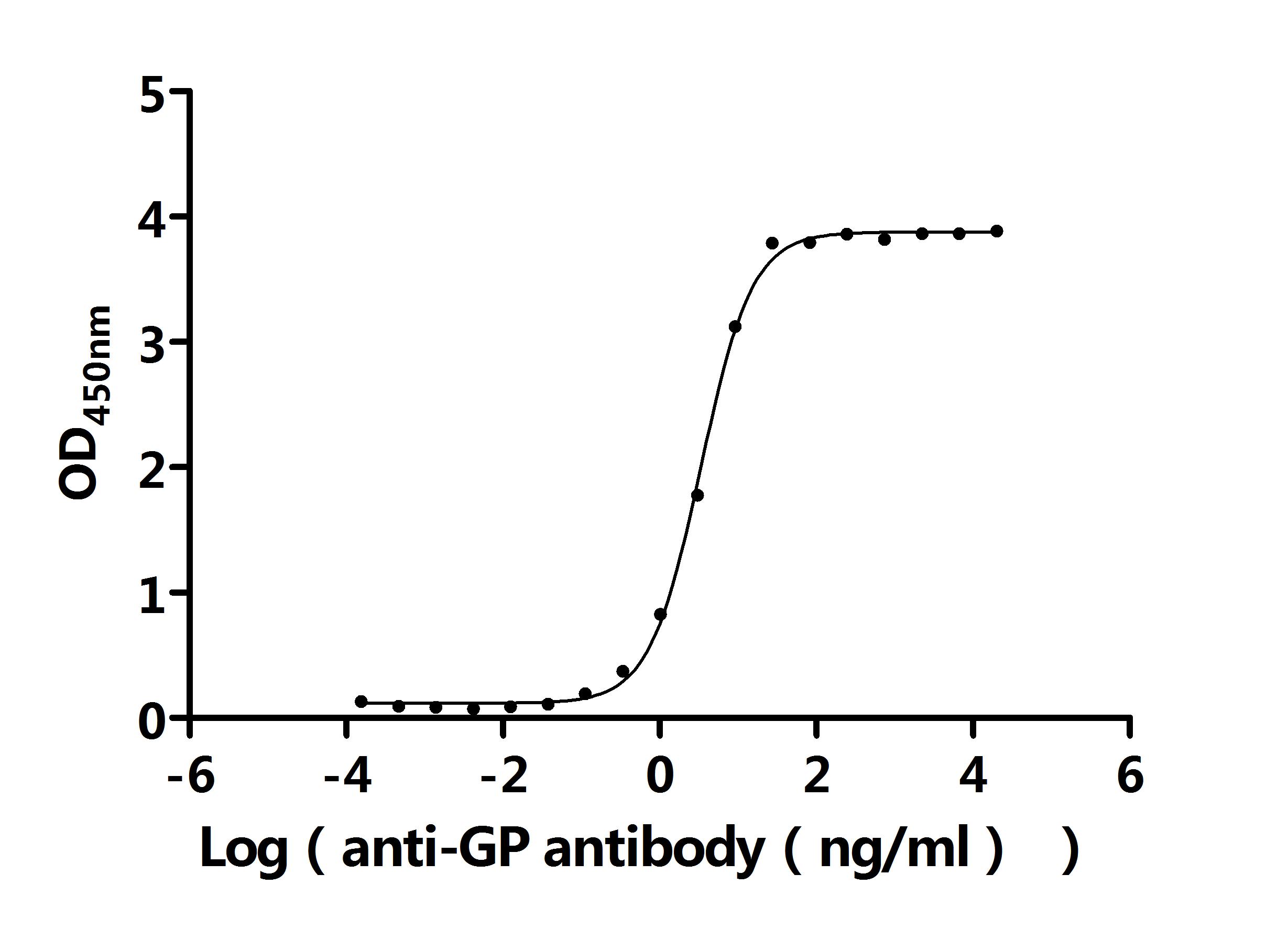 Measured by its binding ability in a functional ELISA. Immobilized CCHFV GP at 2 μg/ml can bind Anti-GP recombinant antibody (CSB-RA810349MA1CSC). The EC50 is 3.136-3.585 ng/mL. Biological Activity Assay