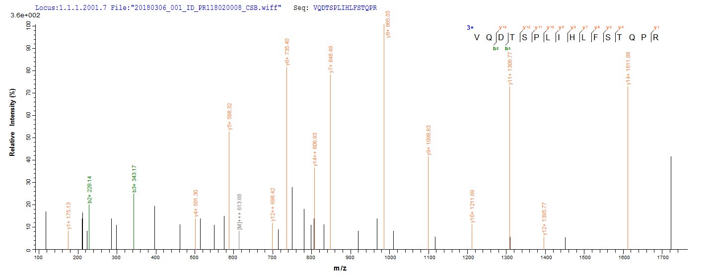 Based on the SEQUEST from database of E.coli host and target protein, the LC-MS/MS Analysis result of CSB-EP364823EGX could indicate that this peptide derived from E.coli-expressed Escherichia coli O6:H1 (strain CFT073 / ATCC 700928 / UPEC) glcC.