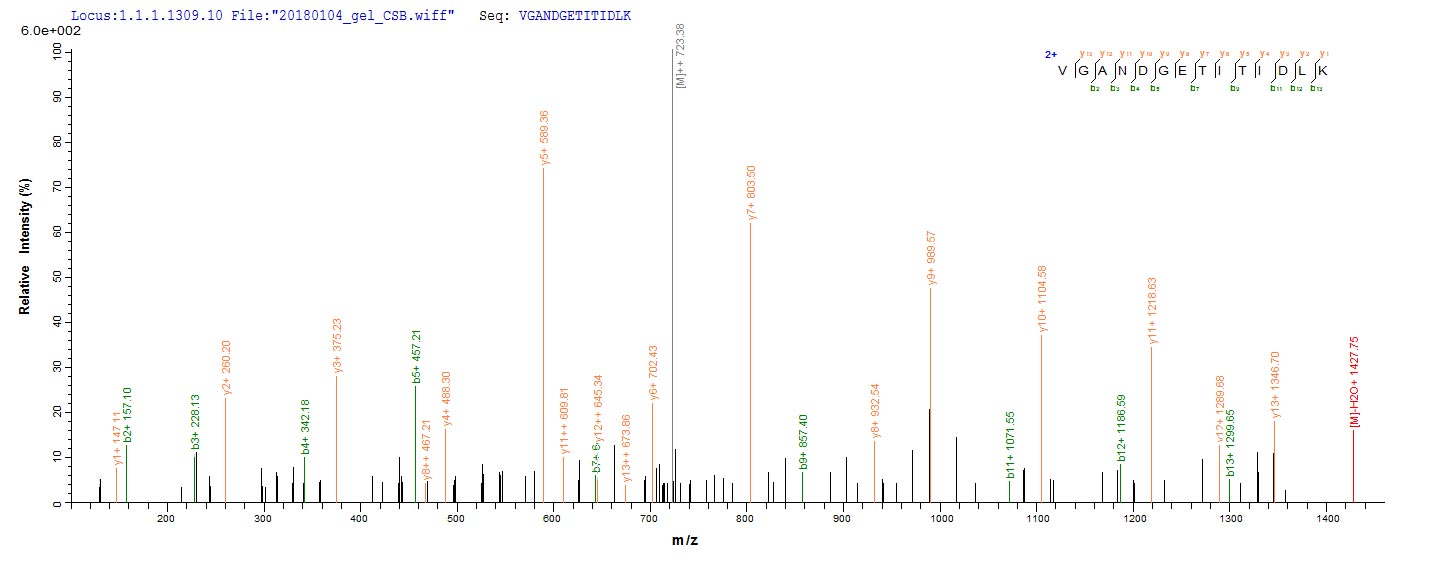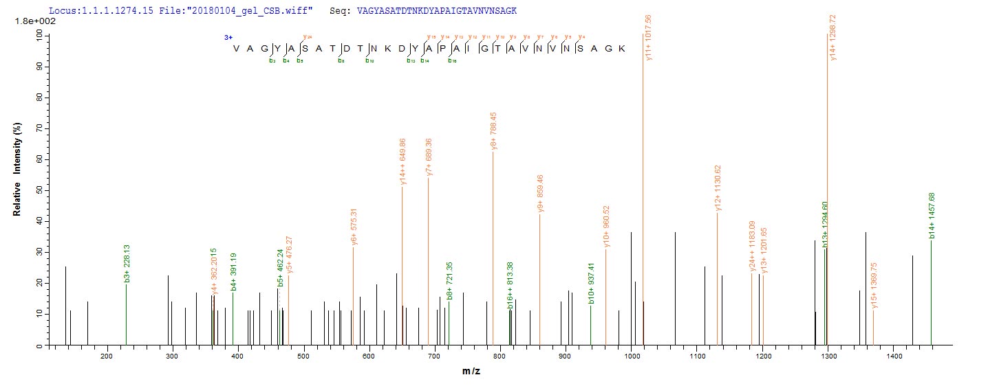 Based on the SEQUEST from database of E.coli host and target protein, the LC-MS/MS Analysis result of CSB-EP2353EODe1 could indicate that this peptide derived from E.coli-expressed Escherichia coli O157:H7 fliC.