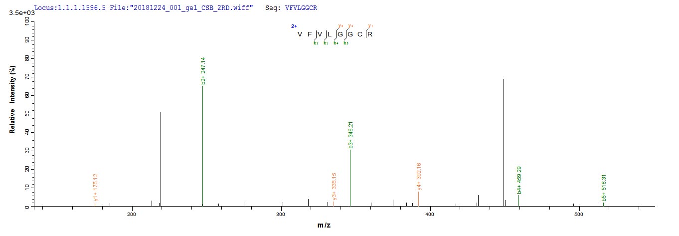 Based on the SEQUEST from database of Yeast host and target protein, the LC-MS/MS Analysis result of CSB-YP865559HEO could indicate that this peptide derived from Yeast-expressed Hepatitis B virus genotype D subtype ayw (isolate Japan/JYW796/1988) (HBV-D) X.