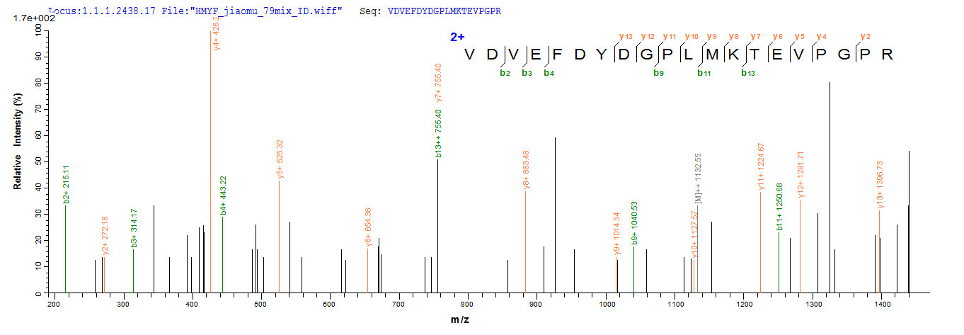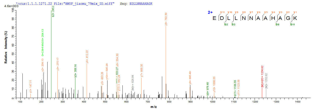 Based on the SEQUEST from database of E.coli host and target protein, the LC-MS/MS Analysis result of CSB-EP001032HU could indicate that this peptide derived from E.coli-expressed Homo sapiens (Human) ABAT.