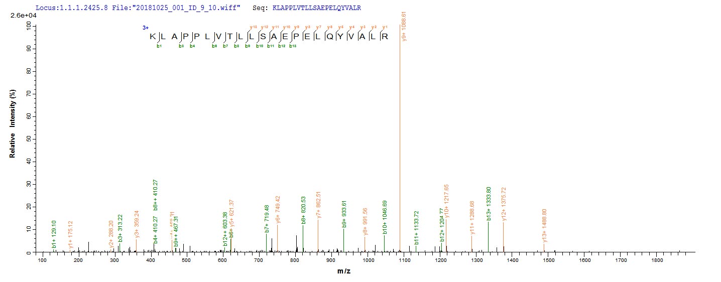 Based on the SEQUEST from database of E.coli host and target protein, the LC-MS/MS Analysis result of CSB-EP604616HU could indicate that this peptide derived from E.coli-expressed Homo sapiens (Human) AP1B1.