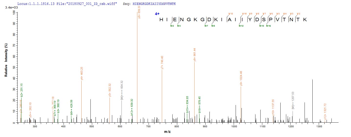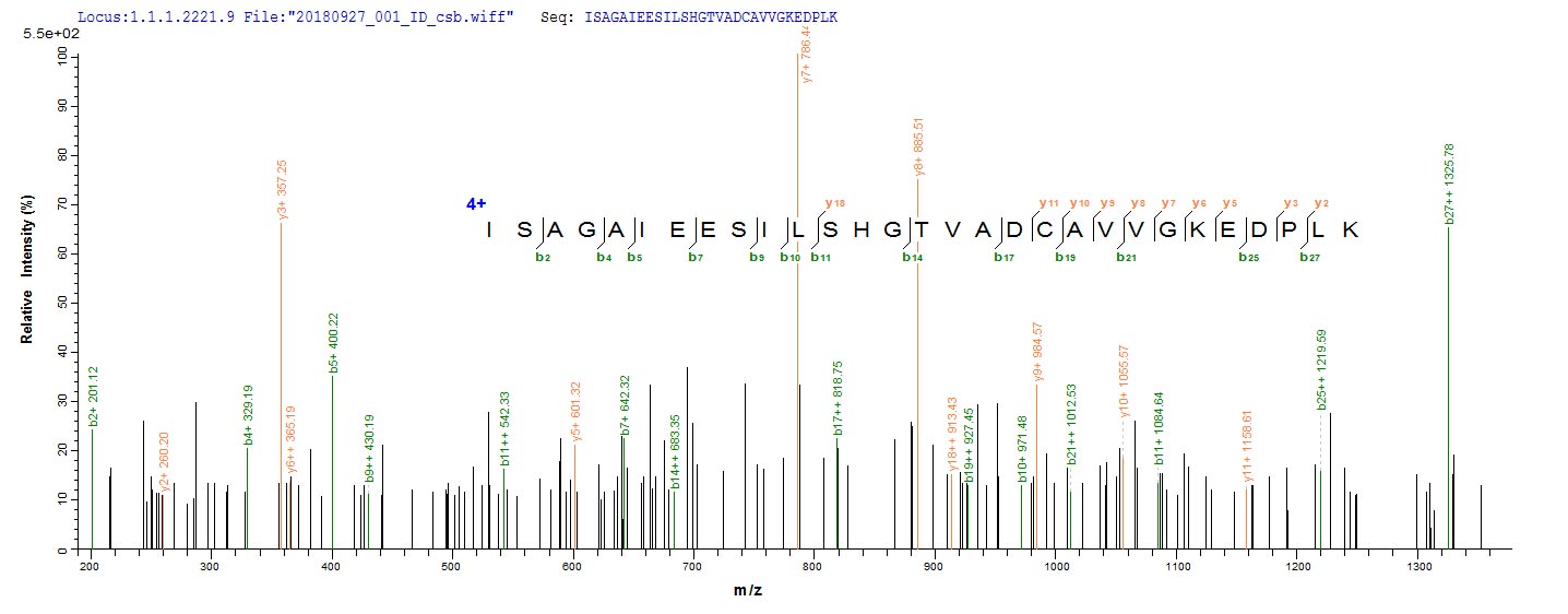 Based on the SEQUEST from database of E.coli host and target protein, the LC-MS/MS Analysis result of CSB-EP887990HU could indicate that this peptide derived from E.coli-expressed Homo sapiens (Human) ACSS3.