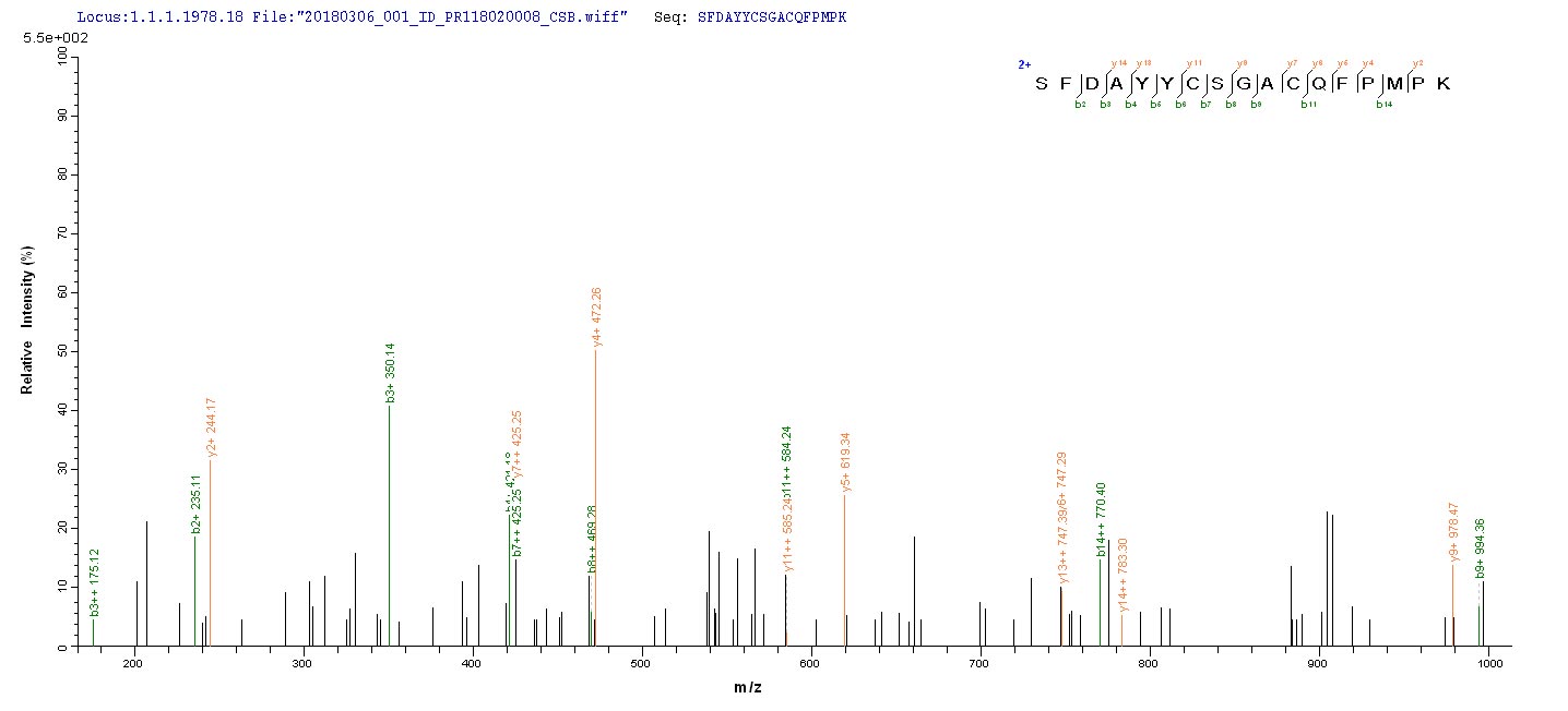 Based on the SEQUEST from database of Yeast host and target protein, the LC-MS/MS Analysis result of CSB-YP002739HU could indicate that this peptide derived from Yeast-expressed Homo sapiens (Human) BMP3.
