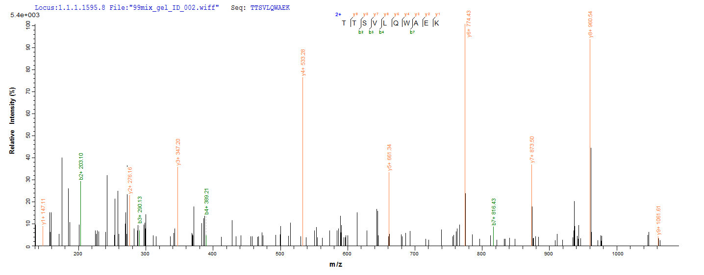 Based on the SEQUEST from database of Yeast host and target protein, the LC-MS/MS Analysis result of CSB-YP004937HU1 could indicate that this peptide derived from Yeast-expressed Homo sapiens (Human) CD40LG.