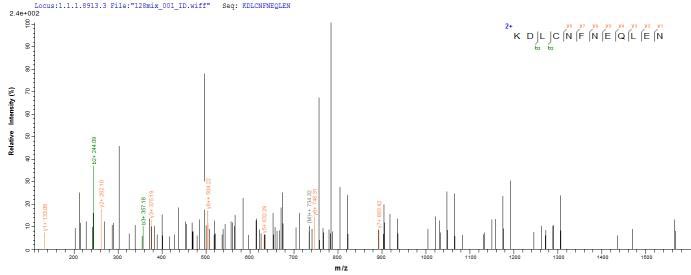 Based on the SEQUEST from database of E.coli host and target protein, the LC-MS/MS Analysis result of CSB-EP004947HU could indicate that this peptide derived from E.coli-expressed Homo sapiens (Human) CD59.