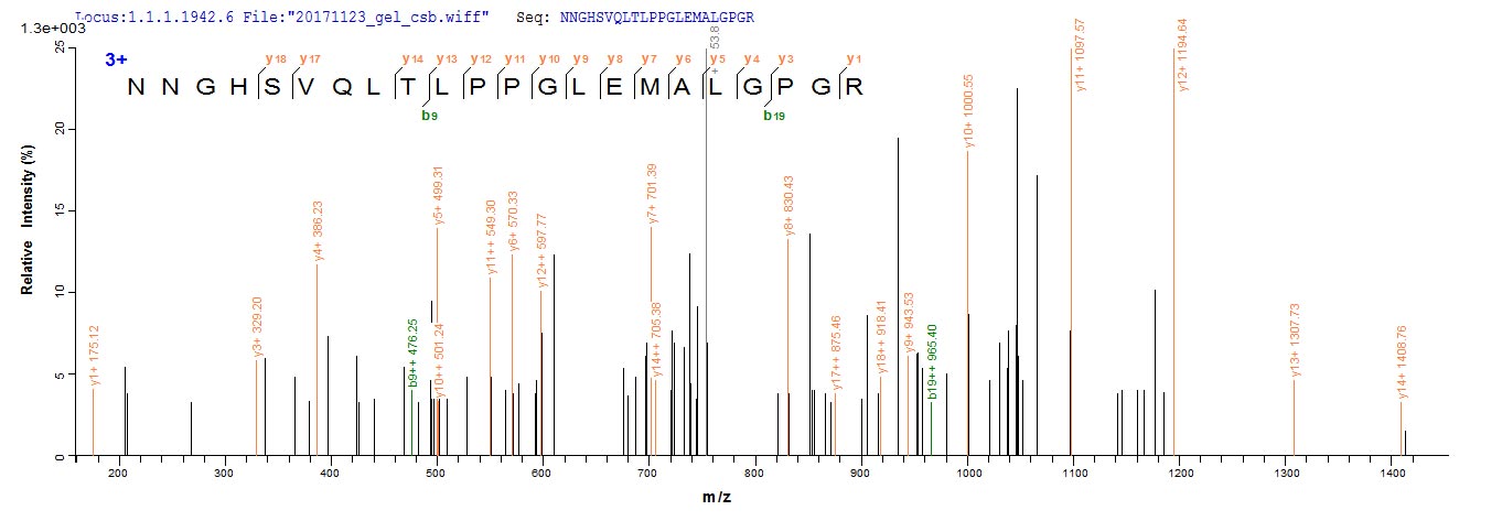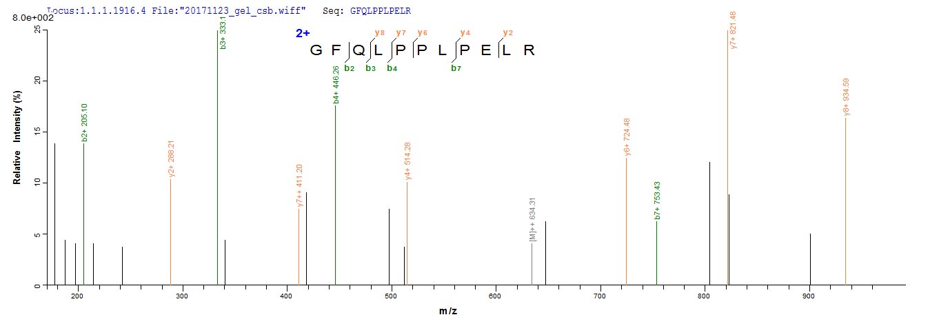 Based on the SEQUEST from database of E.coli host and target protein, the LC-MS/MS Analysis result of CSB-EP614990HU could indicate that this peptide derived from E.coli-expressed Homo sapiens (Human) CA9.