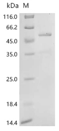 分子量:66.6kDa The?reducing?(R)?protein?migrates?as?54?kDa?in?SDS-PAGE?may?be?due?to?protein cleavage.(C-terminal p12 or p13 domain is cleaved)