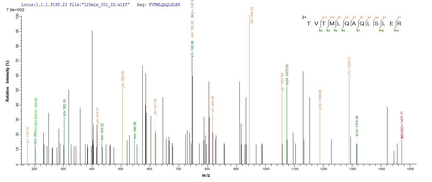 Based on the SEQUEST from database of E.coli host and target protein, the LC-MS/MS Analysis result of CSB-EP005103HU could indicate that this peptide derived from E.coli-expressed Homo sapiens (Human) CDR2.