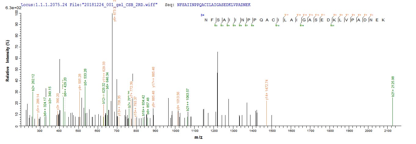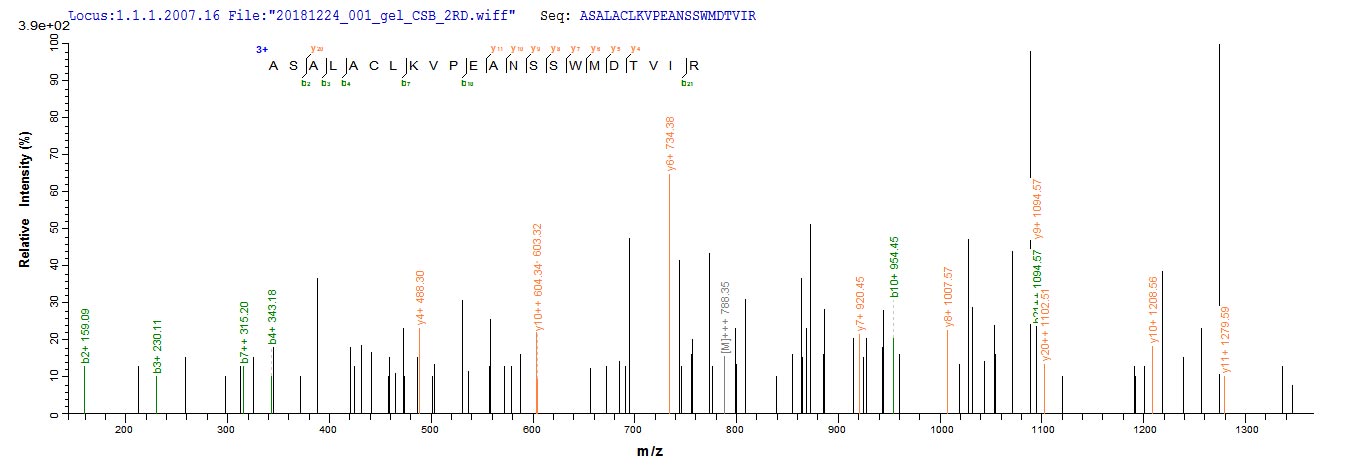 Based on the SEQUEST from database of E.coli host and target protein, the LC-MS/MS Analysis result of CSB-EP006926HU could indicate that this peptide derived from E.coli-expressed Homo sapiens (Human) DLAT.