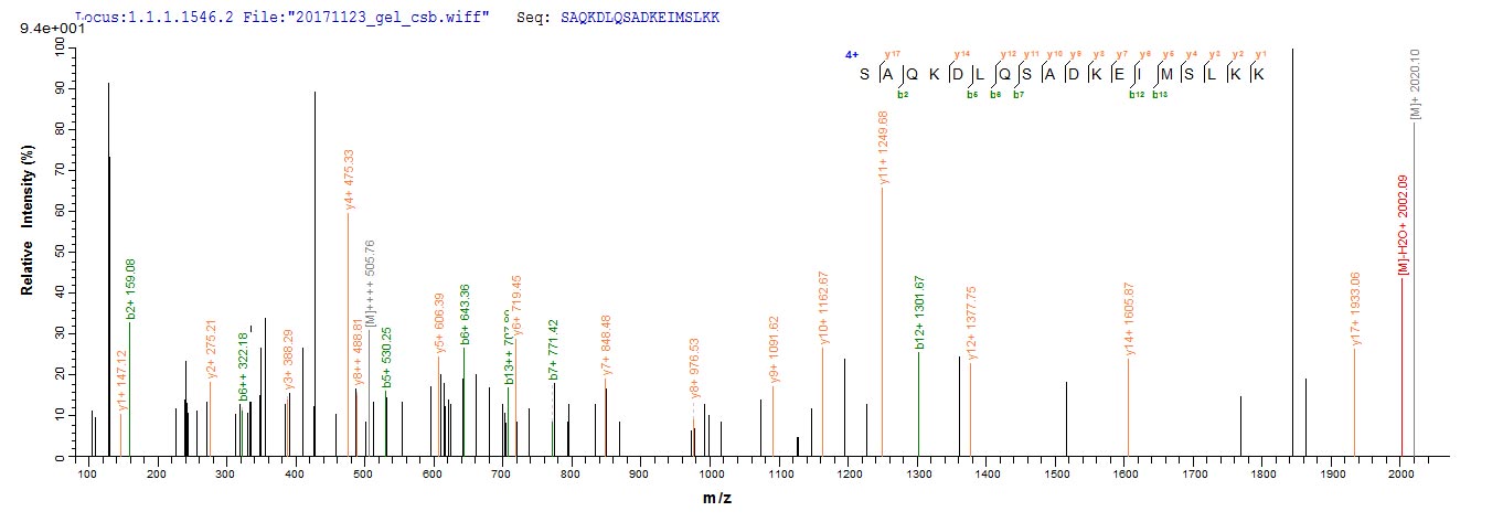 Based on the SEQUEST from database of E.coli host and target protein, the LC-MS/MS Analysis result of CSB-EP866296HU could indicate that this peptide derived from E.coli-expressed Homo sapiens (Human) TRAIP.
