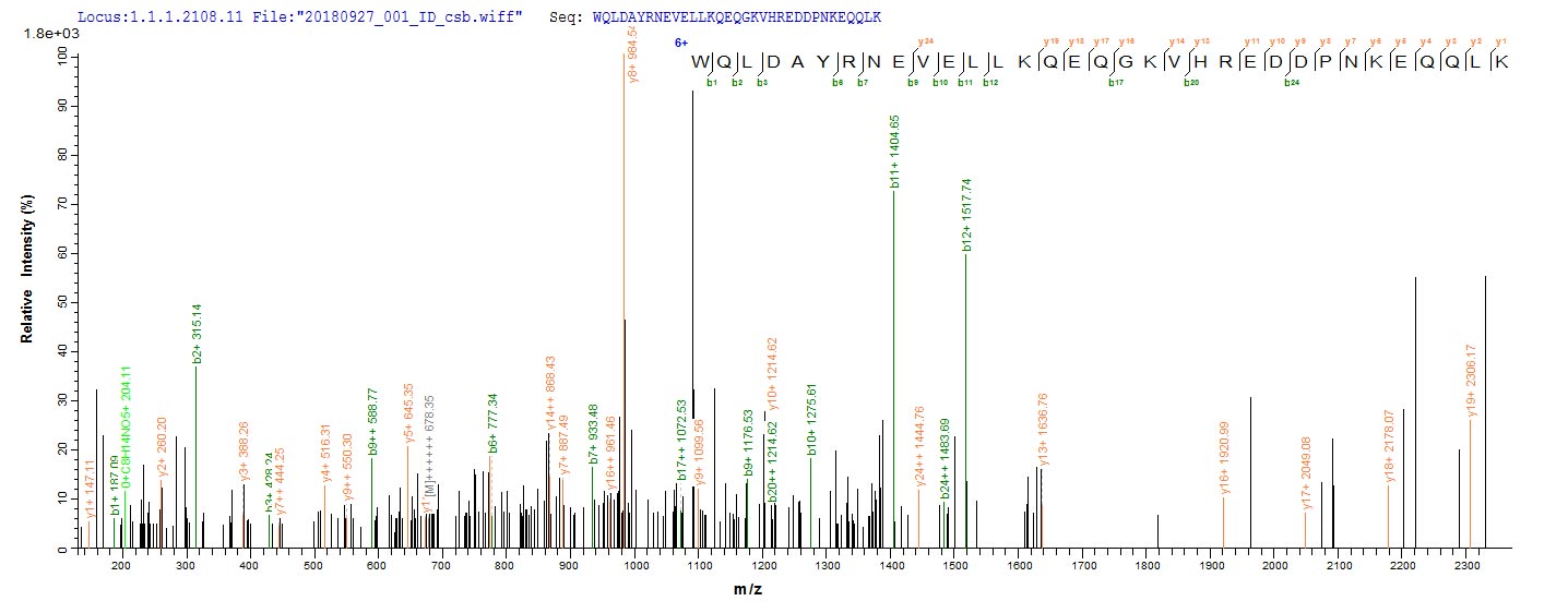 Based on the SEQUEST from database of E.coli host and target protein, the LC-MS/MS Analysis result of CSB-EP007677HU2 could indicate that this peptide derived from E.coli-expressed Homo sapiens (Human) ENOX2.