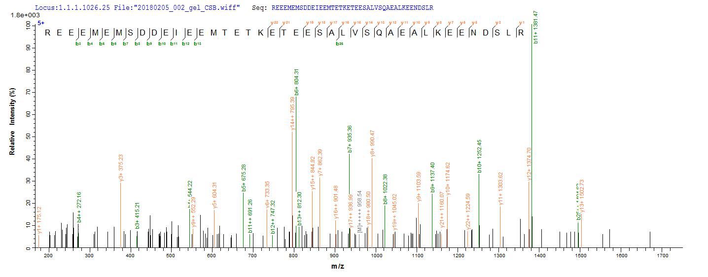 Based on the SEQUEST from database of E.coli host and target protein, the LC-MS/MS Analysis result of CSB-EP007677HU1 could indicate that this peptide derived from E.coli-expressed Homo sapiens (Human) ENOX2.