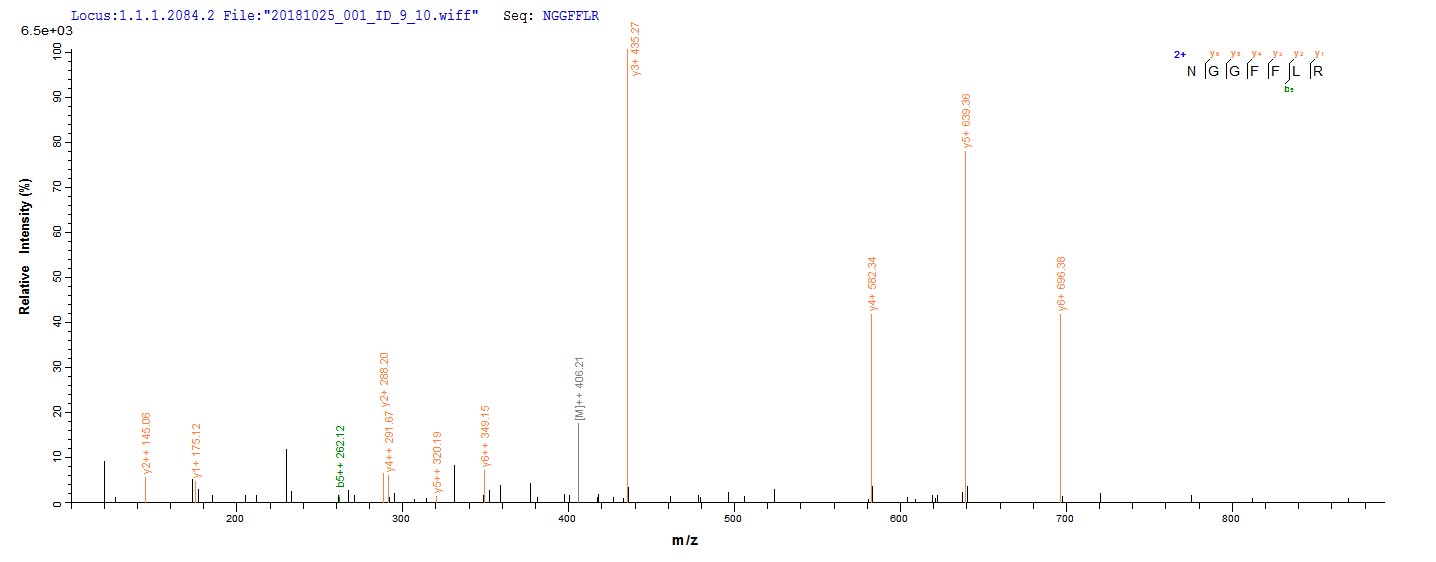 Based on the SEQUEST from database of Yeast host and target protein, the LC-MS/MS Analysis result of CSB-YP008625HU could indicate that this peptide derived from Yeast-expressed Homo sapiens (Human) FGF2.