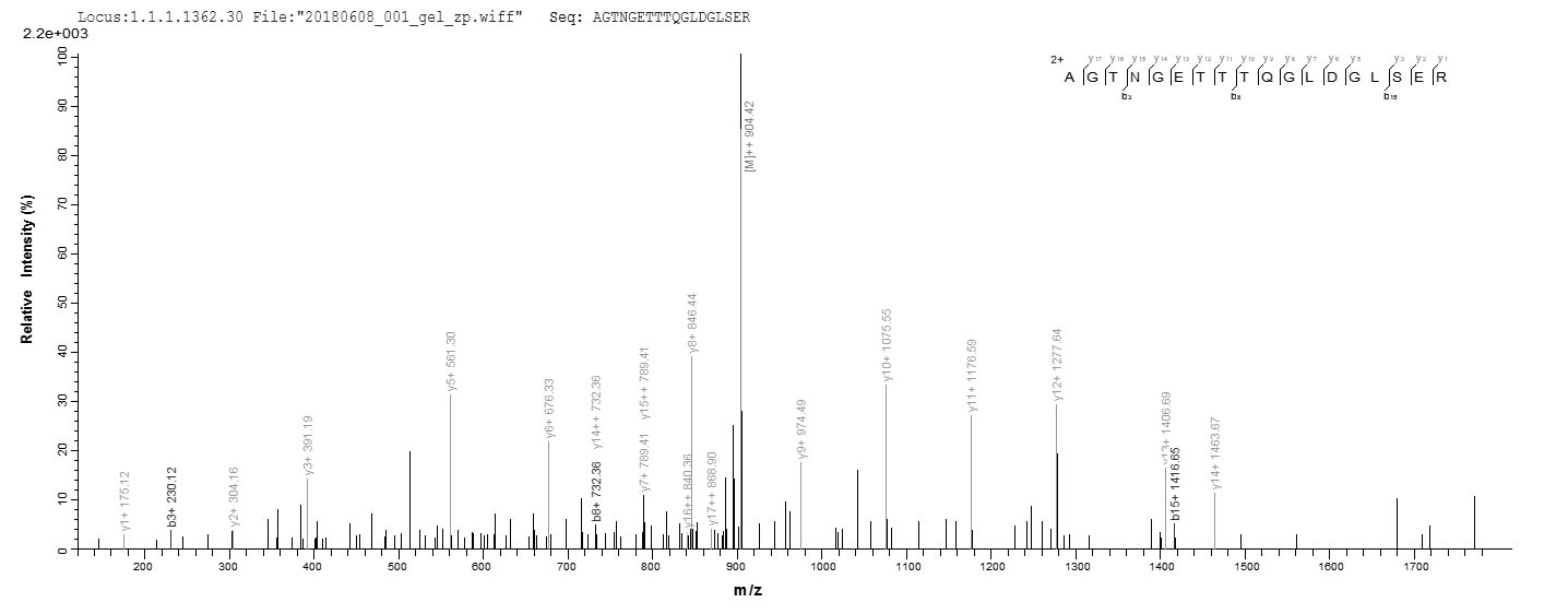 Based on the SEQUEST from database of E.coli host and target protein, the LC-MS/MS Analysis result of CSB-RP000154h could indicate that this peptide derived from E.coli-expressed Homo sapiens (Human) ALDOA.