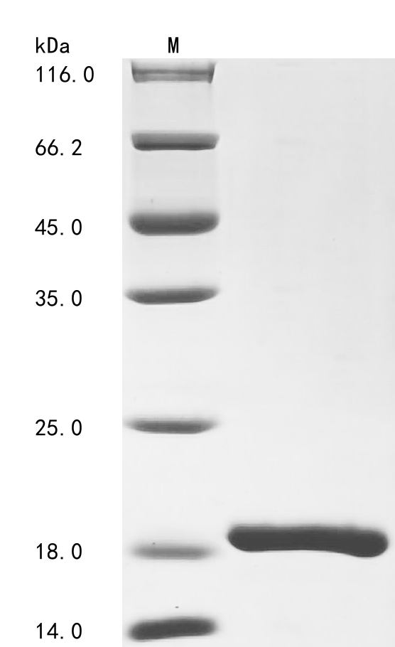 復(fù)溶:We recommend that this vial be briefly centrifuged prior to opening to bring the contents to the bottom. Please reconstitute protein in deionized sterile water to a concentration of 0.1-1.0 mg/mL.We recommend to add 5-50% of glycerol (final concentration) and aliquot for long-term storage at -20°C/-80°C. Our default final concentration of glycerol is 50%. Customers could use it as reference.