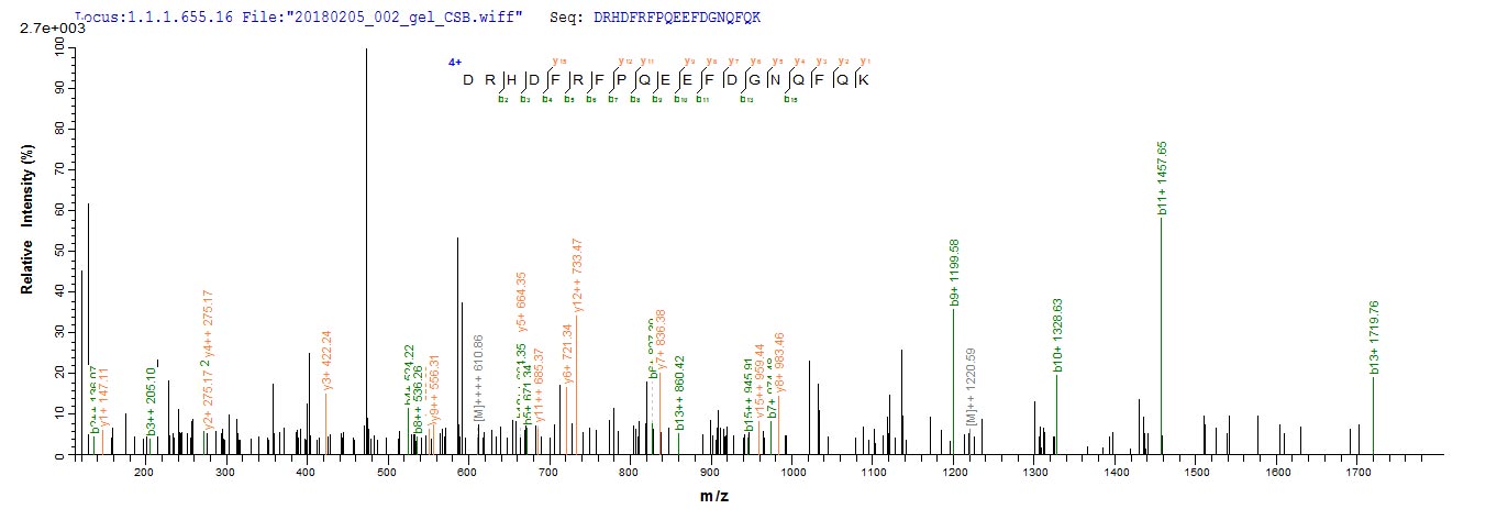 Based on the SEQUEST from database of E.coli host and target protein, the LC-MS/MS Analysis result of CSB-EP011042HU could indicate that this peptide derived from E.coli-expressed Homo sapiens (Human) IFNA6.