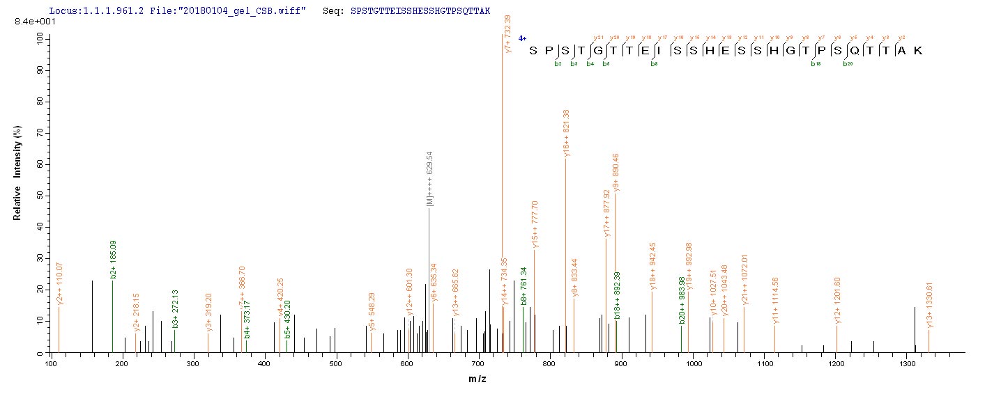 Based on the SEQUEST from database of E.coli host and target protein, the LC-MS/MS Analysis result of CSB-EP614402HU could indicate that this peptide derived from E.coli-expressed Homo sapiens (Human) IL15RA.