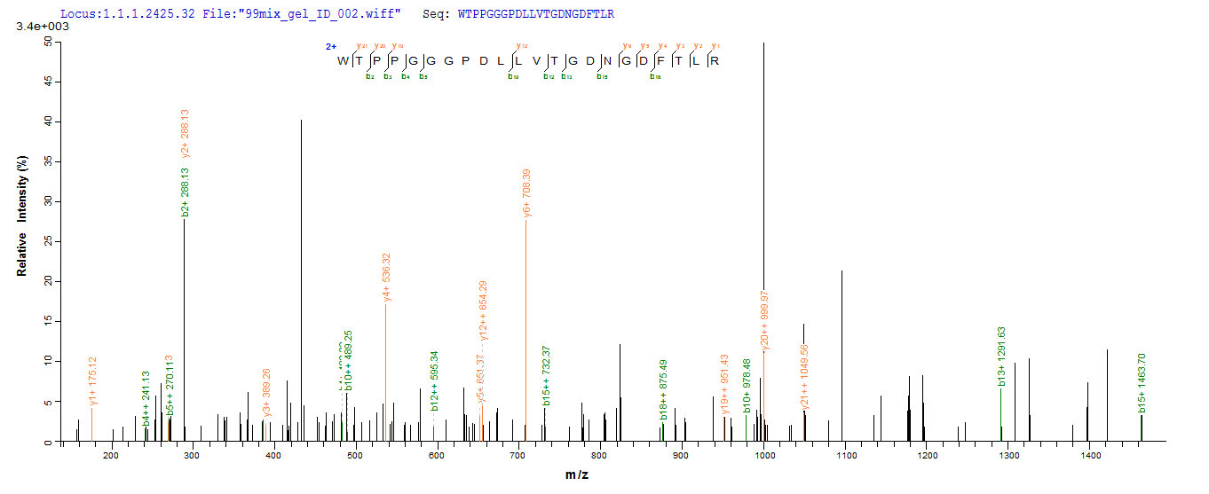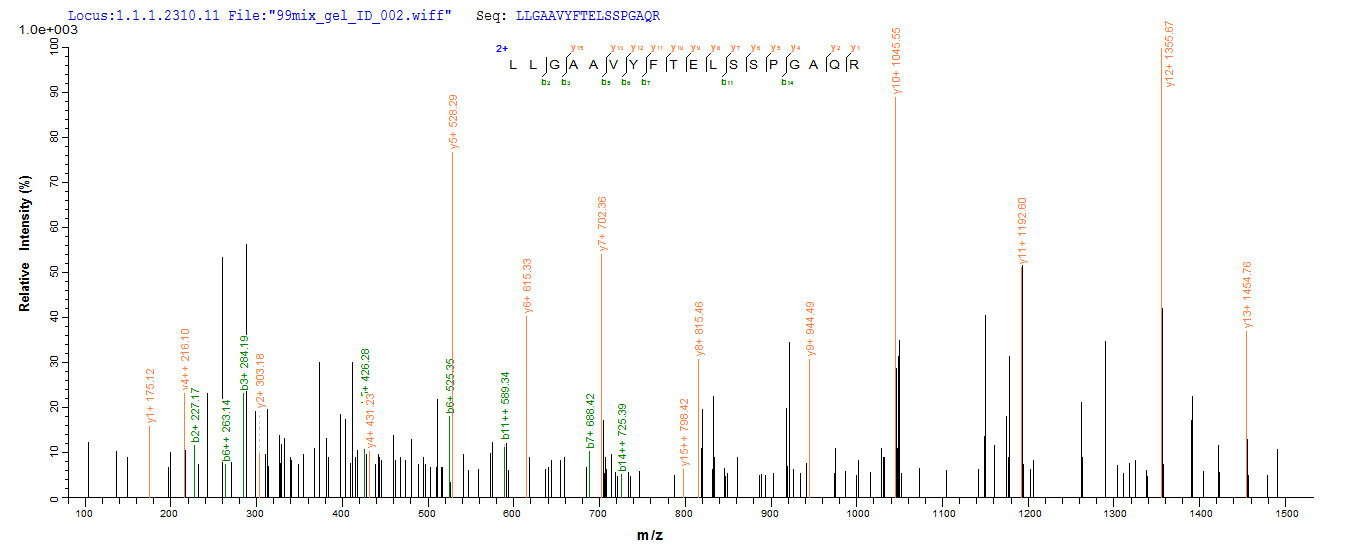Based on the SEQUEST from database of E.coli host and target protein, the LC-MS/MS Analysis result of CSB-EP012719HU1 could indicate that this peptide derived from E.coli-expressed Homo sapiens (Human) LAG3.