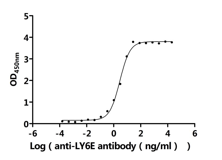Measured by its binding ability in a functional ELISA. Immobilized Human LY6E protein at 2 μg/ml can bind Anti-LY6E recombinant antibody (CSB-RA619076MA1HU). The EC50 is 2.483-3.282 ng/mL. Biological Activity Assay -
