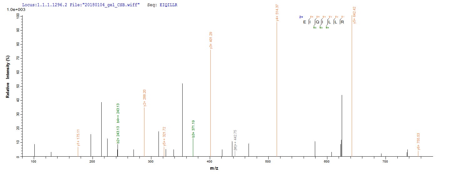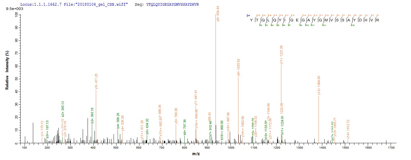 Based on the SEQUEST from database of E.coli host and target protein, the LC-MS/MS Analysis result of CSB-EP013456HU could indicate that this peptide derived from E.coli-expressed Homo sapiens (Human) MAPK3.