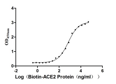 生物活性:Measured by its binding ability in a functional ELISA. Immobilized SARS-CoV-2-S1-RBD(W436R) at 2 μg/ml can bind Biotinylated human ACE2 (CSB-MP866317HU-B), the EC50 is 625.3-783.2 ng/ml.