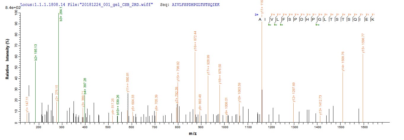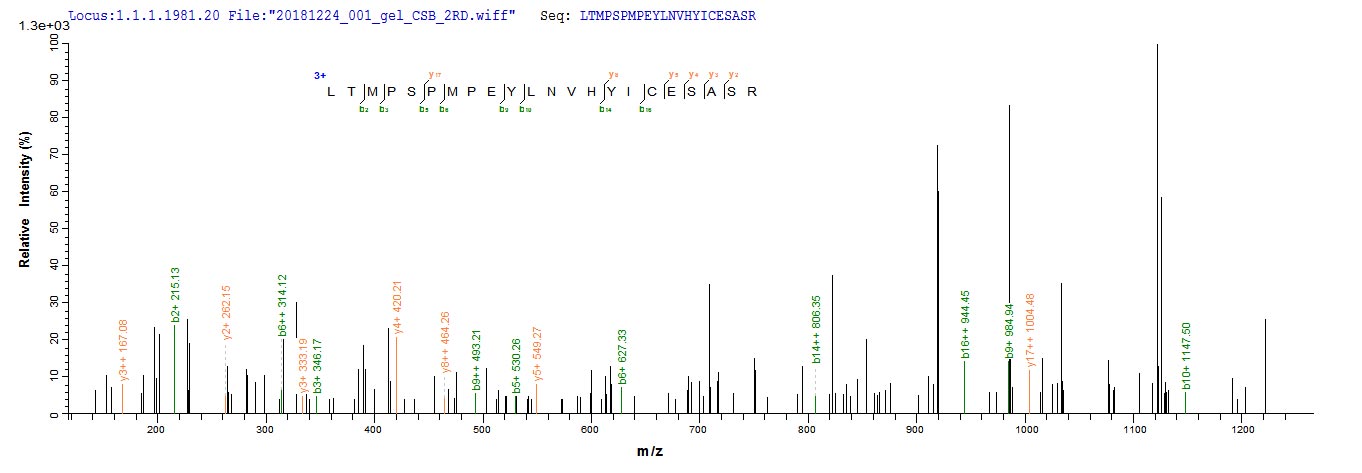 Based on the SEQUEST from database of E.coli host and target protein, the LC-MS/MS Analysis result of CSB-EP016052HU1 could indicate that this peptide derived from E.coli-expressed Homo sapiens (Human) Nr2c2.