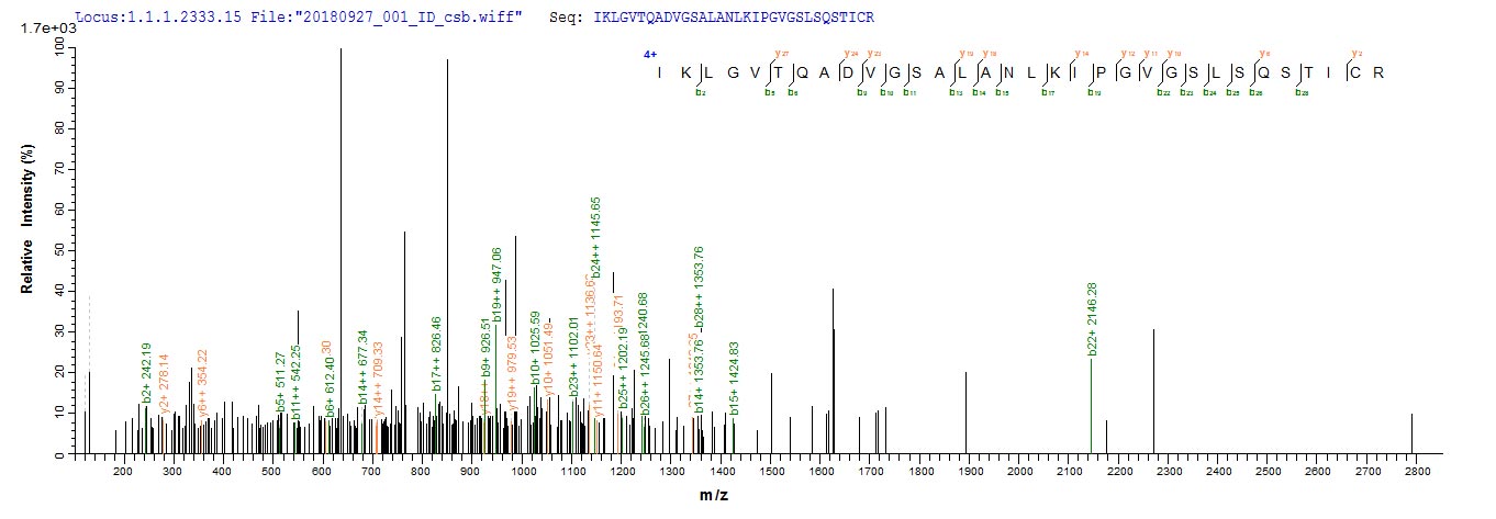Based on the SEQUEST from database of E.coli host and target protein, the LC-MS/MS Analysis result of CSB-EP622514HU could indicate that this peptide derived from E.coli-expressed Homo sapiens (Human) POU4F2.