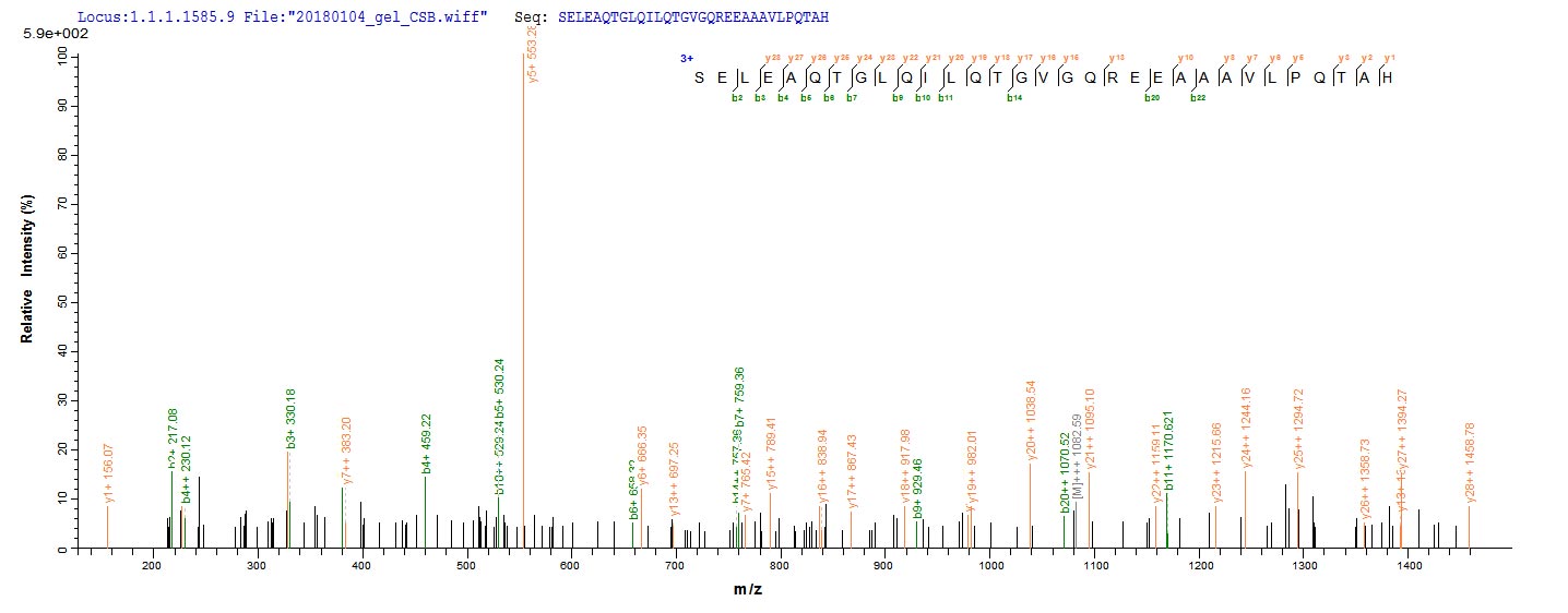 Based on the SEQUEST from database of Yeast host and target protein, the LC-MS/MS Analysis result of CSB-YP613703HU could indicate that this peptide derived from Yeast-expressed Homo sapiens (Human) PTPRN.