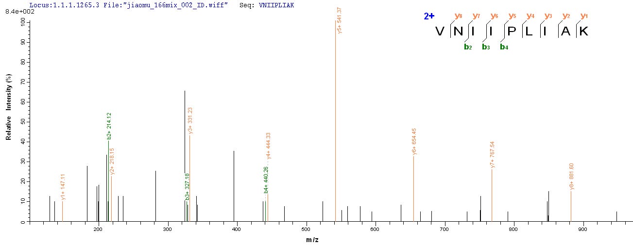 Based on the SEQUEST from database of E.coli host and target protein, the LC-MS/MS Analysis result of CSB-EP620952HU could indicate that this peptide derived from E.coli-expressed Homo sapiens (Human) SEPT7.