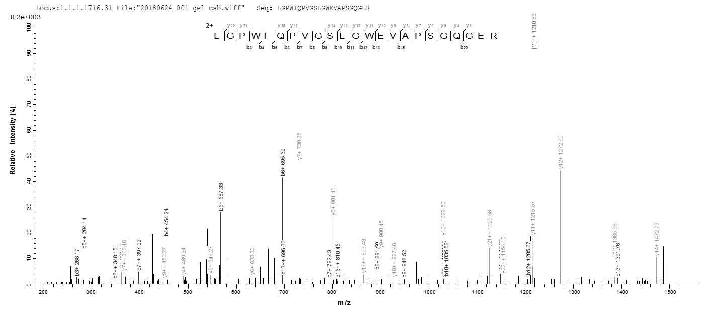 Based on the SEQUEST from database of E.coli host and target protein, the LC-MS/MS Analysis result of CSB-EP008789HU could indicate that this peptide derived from E.coli-expressed Homo sapiens (Human) IZUMO1R.