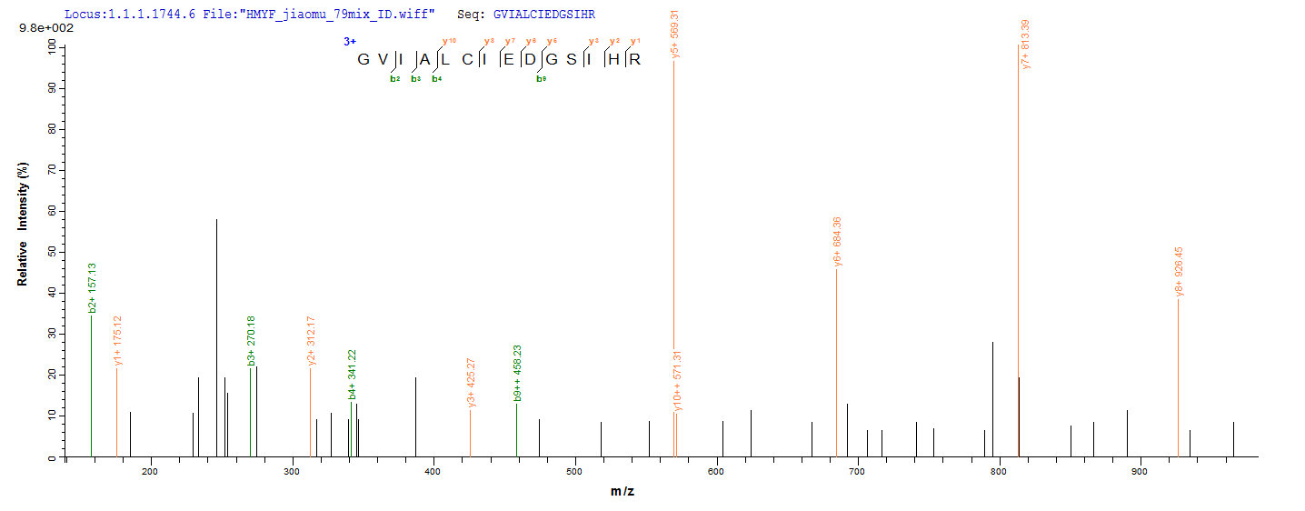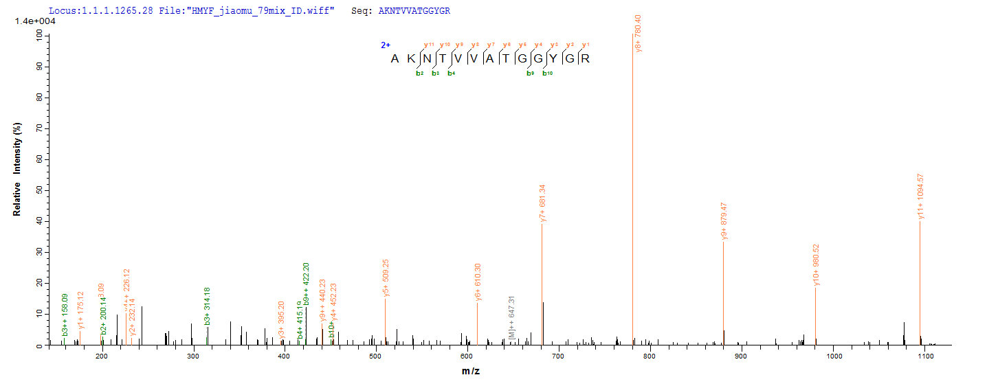 Based on the SEQUEST from database of E.coli host and target protein, the LC-MS/MS Analysis result of CSB-RP019854h could indicate that this peptide derived from E.coli-expressed Homo sapiens (Human) SDHA.