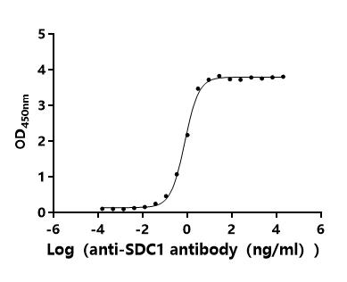 Measured by its binding ability in a functional ELISA.Immobilized Human SDC1 at 2 μg/ml can bind anti-SDC1 recombinant antibody(CSB-RA020888MA1HU).The EC50 is 0.7196-0.8309 ng/mL. Biological Activity Assay -