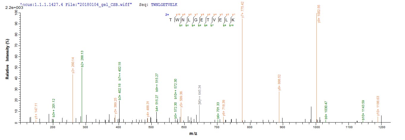 Based on the SEQUEST from database of Mammalian Cell host and target protein, the LC-MS/MS Analysis result of CSB-MP004966HU could indicate that this peptide derived from Mammalian Cell-expressed Homo sapiens (Human) CD8A.