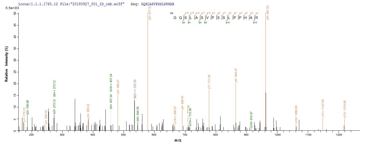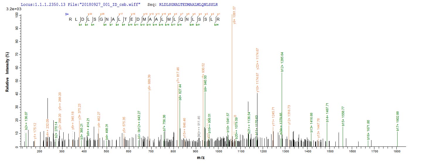 Based on the SEQUEST from database of E.coli host and target protein, the LC-MS/MS Analysis result of CSB-EP801264HU could indicate that this peptide derived from E.coli-expressed Homo sapiens (Human) NRROS.