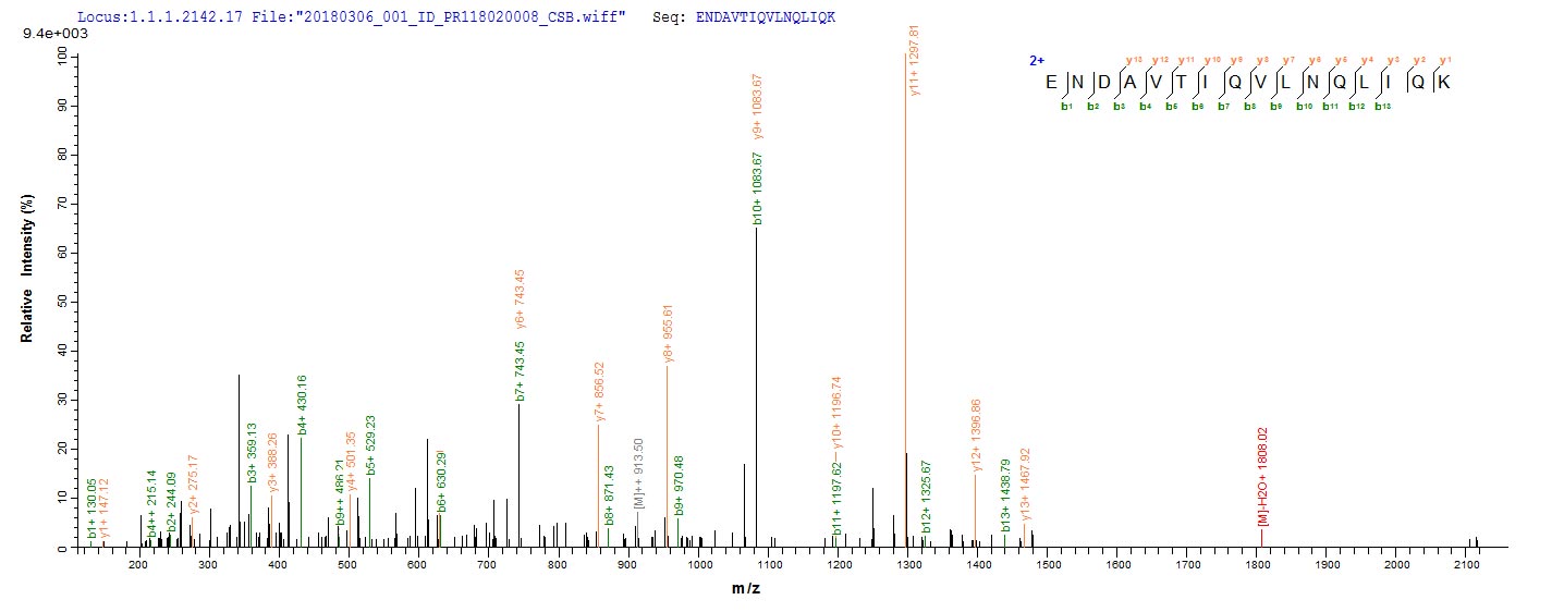 Based on the SEQUEST from database of E.coli host and target protein, the LC-MS/MS Analysis result of CSB-EP839401HU could indicate that this peptide derived from E.coli-expressed Homo sapiens (Human) VPS35.