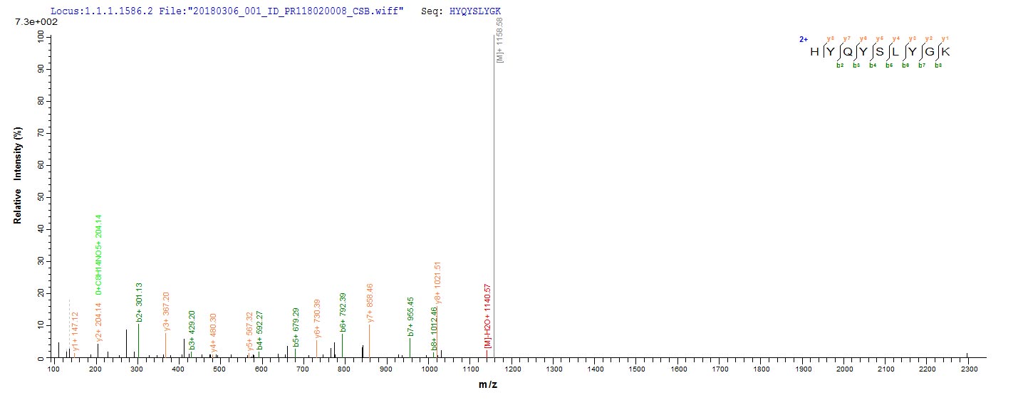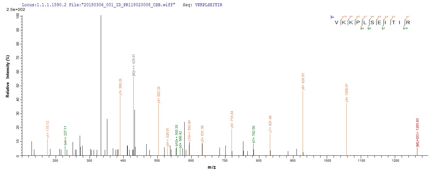 Based on the SEQUEST from database of E.coli host and target protein, the LC-MS/MS Analysis result of CSB-EP334186HNY could indicate that this peptide derived from E.coli-expressed Human papillomavirus type 52 E6.