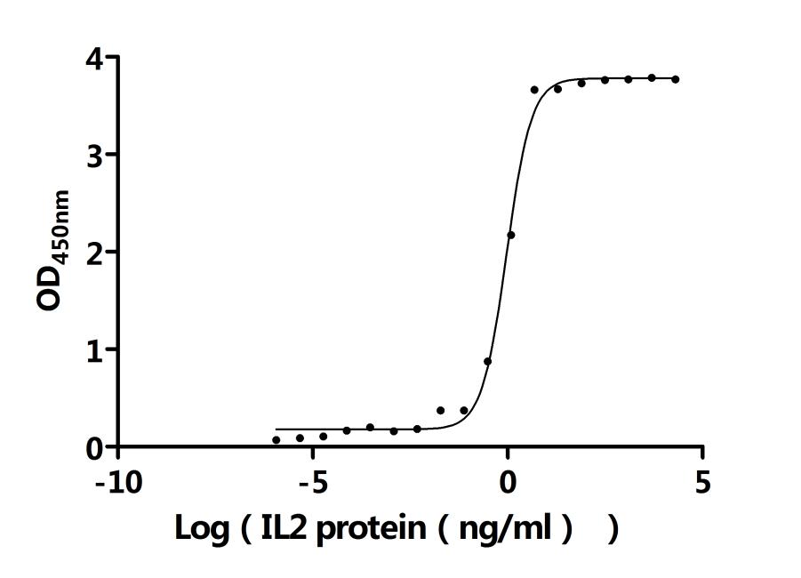 Measured by its binding ability in a functional ELISA. Immobilized Macaca fascicularis IL2RA at 2 μg/ml can bind Human IL2 (CSB-MP011629HU). The EC50 is 0.8151-1.087 ng/mL. Biological Activity Assay -