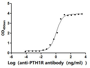Measured by its binding ability in a functional ELISA.Immobilized Macaca fascicularit PTH1R at 2 μg/ml can bind Anti-PTH1R recombinant antibody (CSB-RA018988MA1HU). The EC50 is 1.072 to 1.403 ng/mL. Biological Activity Assay