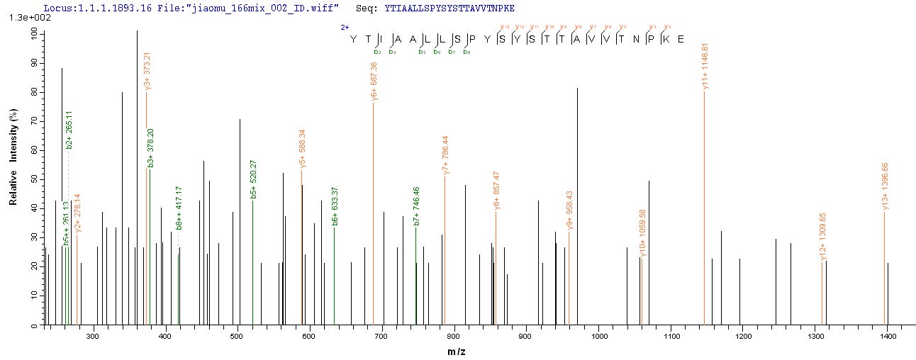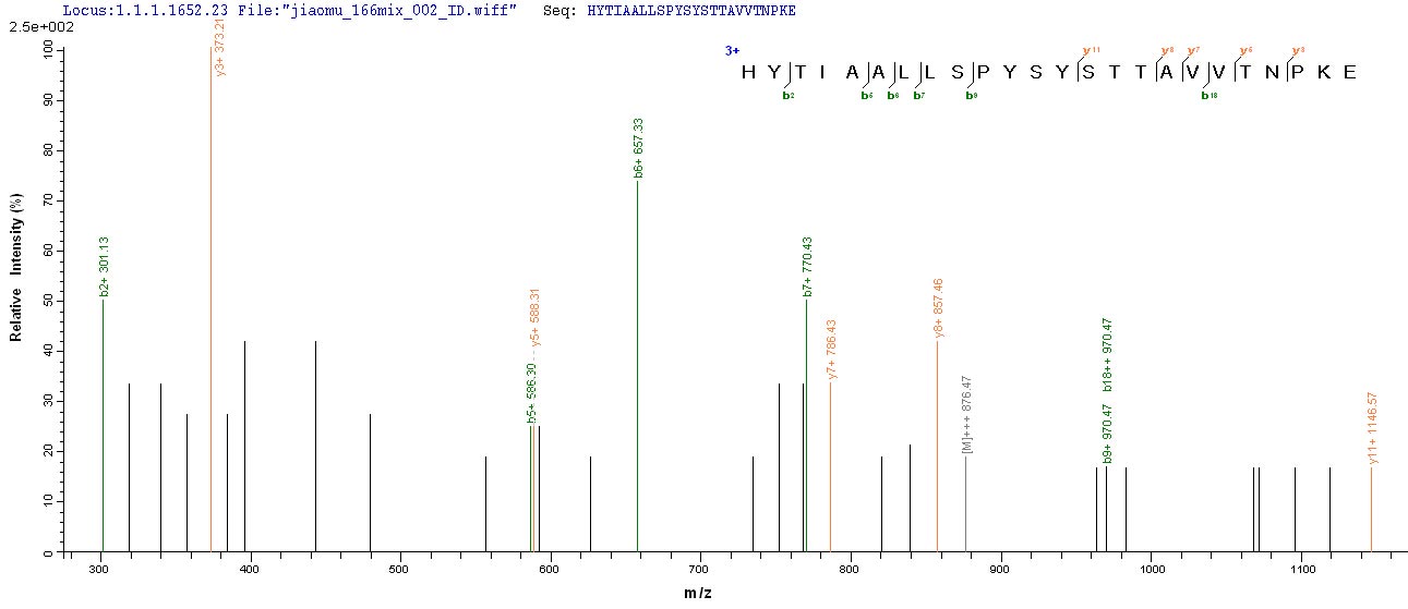 Based on the SEQUEST from database of Mammalian Cell host and target protein, the LC-MS/MS Analysis result of CSB-MP025270MOV could indicate that this peptide derived from Mammalian Cell-expressed Macaca fascicularis (Crab-eating macaque) (Cynomolgus monkey) TTR.