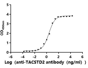 Measured by its binding ability in a functional ELISA.Immobilized Macaca fascicularis TACSTD2 at 2 μg/ml can bind Anti-TACSTD2 recombinant antibody(CSB-RA023072MA1HU) The EC50 is 2.103-2.767 ng/mL. Biological Activity Assay